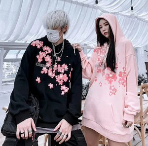 潮流时尚元素新款个性连帽衫跨境欧美樱花图案彩绘情侣卫衣经典