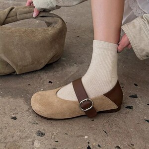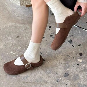 韩版圆头绒面一字带单鞋女2025新款秋季复古豹纹时髦玛丽珍小皮鞋