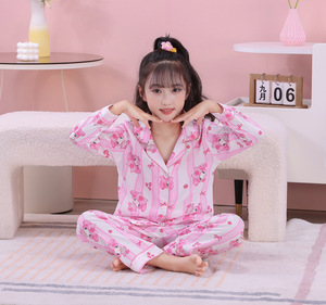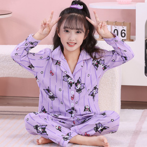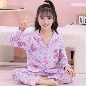 儿童睡衣女童秋季卡通长袖长裤云朵棉中大女童开衫家居服保暖套装