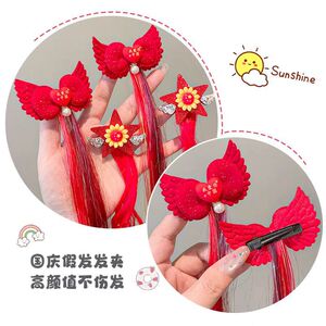 儿童国庆编发夹发饰女童中国红国庆扎辫子发卡出游节日假发夹子