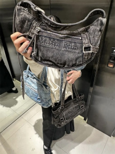 韩国matin kim复古牛仔布包大容量单肩腋下包休闲通勤手提包
