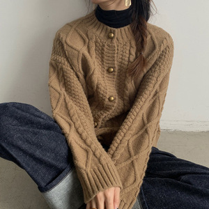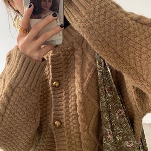 韩系复古麻花针织开衫女2025秋冬新款慵懒风宽松外套加厚粗线毛衣