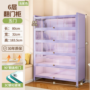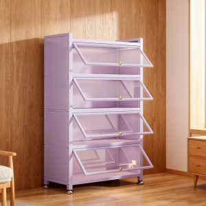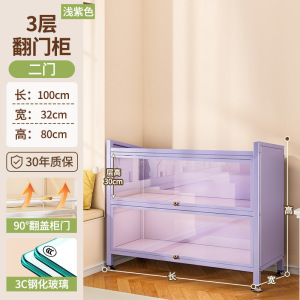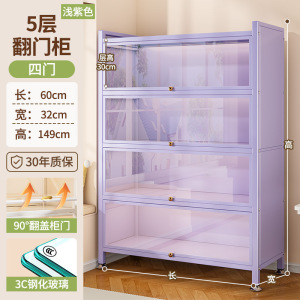 家用书架带玻璃门书柜手办柜展示储物一体收纳柜客厅卧室紫色痛柜
