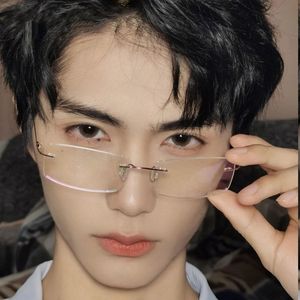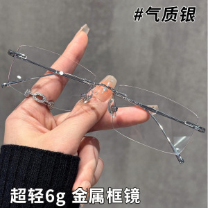 超轻无框眼镜女近视可配有度数无边框网红纯欲小方框防蓝光眼睛架