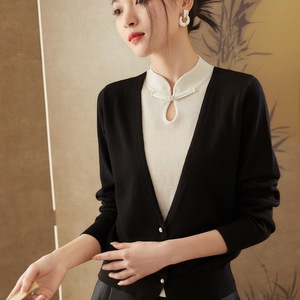 板娘力荐丨至柔之美丨 容烟新中式水滴领 假两件拼接针织小上衣の
