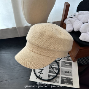 简约平顶纯色鸭舌帽女早秋新款休闲遮阳画家帽百搭显脸小八角帽潮