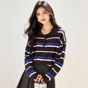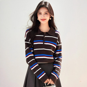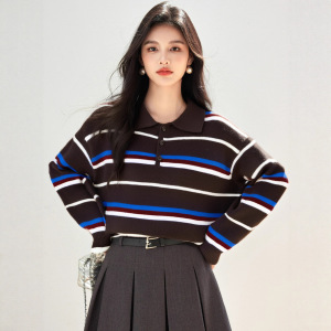 韩系复古撞色条纹秋冬毛衣女2025新款百搭宽松减龄休闲针织衫上衣