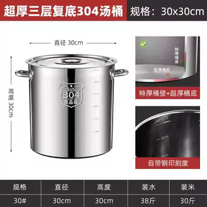 316不锈钢汤桶电磁炉加厚底耐烧商用饭店大容量家用高汤锅卤肉桶