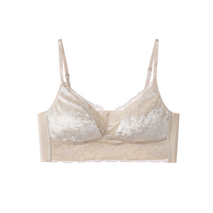 25秋冬丝绒立体蕾丝款V领吊带美背蚕丝润肤内衣一体固定杯设计款