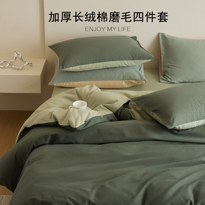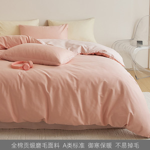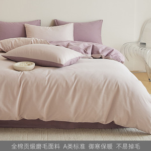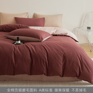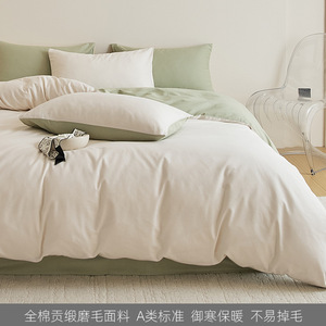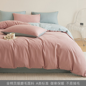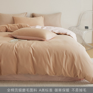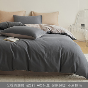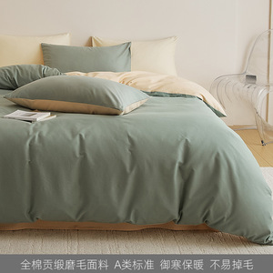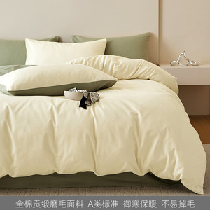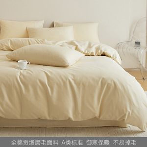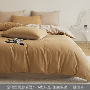 高端A类全棉贡缎磨毛四件套2025新款纯棉床单床上被套秋冬季保暖4