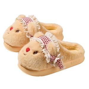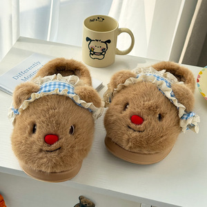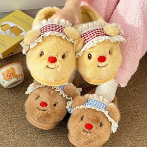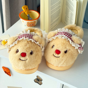 卡通立体小熊冬天加绒防滑家用毛毛拖鞋室内防滑保暖拖鞋女