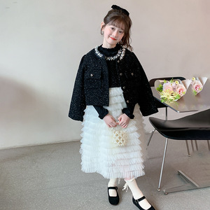 秋季女童连衣裙套装童装儿童小香风外套蓬蓬公主裙三件套礼服裙潮