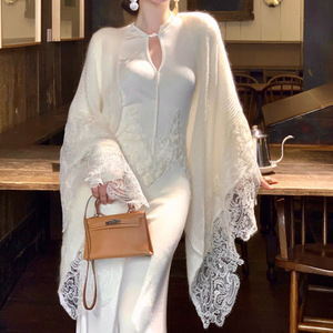 【瓷生花】新中式复古盘扣旗袍修身连衣裙搭软糯针织开衫套装裙子