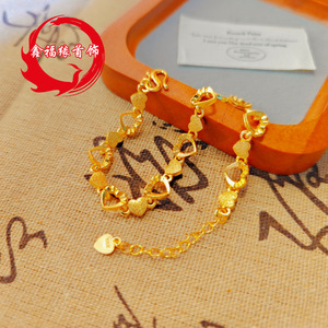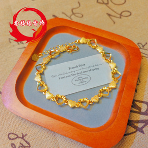 批发黄铜镀金爱心手链电镀仿黄金首饰品实体电商货源女士手环