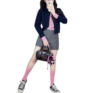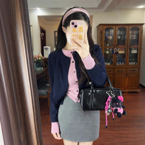 韩系时尚穿搭假两件长袖针织开衫女秋季新款修身显瘦气质辣妹上衣