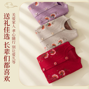 老年人春秋装保暖衣奶奶秋装毛衣开衫女妈妈加绒针织外套老人衣服