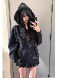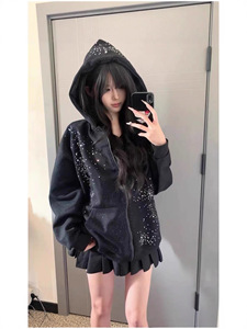 2025秋冬欧美星星元素连帽加绒加厚拉链设计潮流宽松时尚卫衣外套