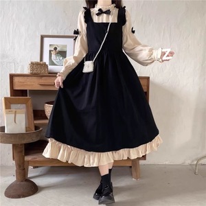 小清新ins风可爱减龄复古轻lo洛丽塔背带裙女宽松蝴蝶结两件套装