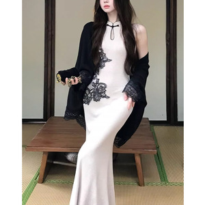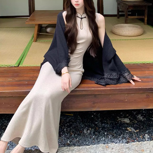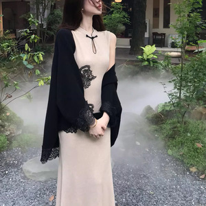 2025初秋新中式无袖旗袍针织连衣裙长裙开衫两件套套装2025秋季新