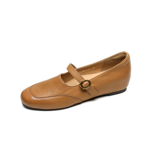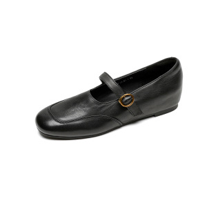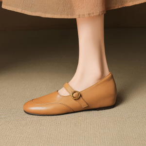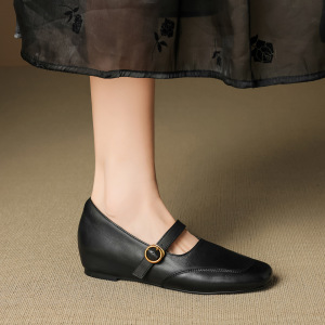舒适圆头内增高玛丽珍女鞋新款春秋百搭软面真皮一字带法式单鞋