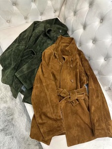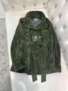 202秋季新款女装时尚气质毛短款廓形麂皮绒真皮皮衣外套系带显瘦