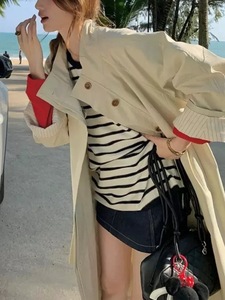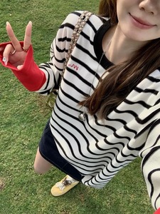 MUKOK夏尔线谱新%纯棉撞色条纹针织衫女套头毛衣圆领t衣春