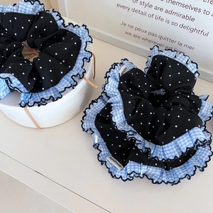 甜美波点蓝色格纹花边大肠发圈韩系时尚百搭扎丸子头发绳头绳发饰