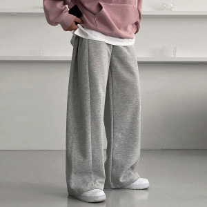 MYQ松弛感灰色卫裤男秋季宽松直筒长裤子韩系通勤风拖地休闲裤