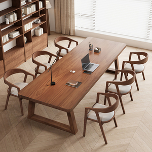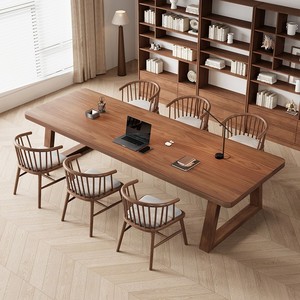 简约会议桌大板桌书桌餐桌椅组合家用长方形茶桌办公桌洽谈桌实木