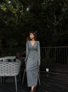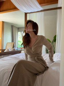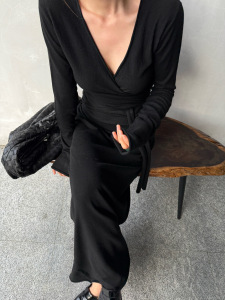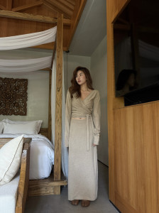2025秋季新款 软糯升级row风极简显瘦收腰打结针织开衫半身裙套装
