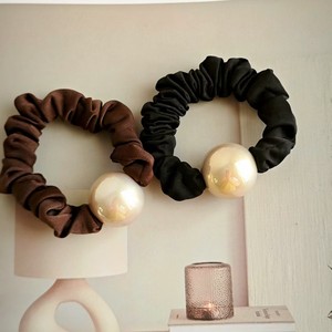 高级感香槟色大珍珠黑色大肠发圈皮筋发饰简约冰丝布艺高弹力头绳
