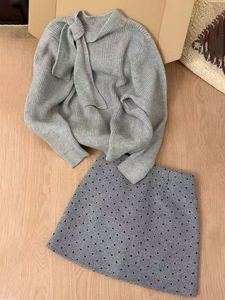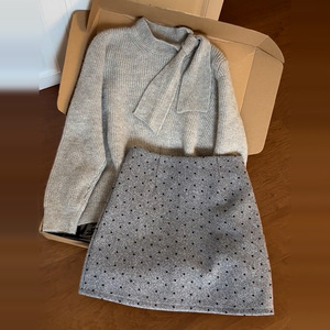 韩系氛围感穿搭一整套早秋新款慵懒风显瘦针织衫毛衣短裙两件套潮
