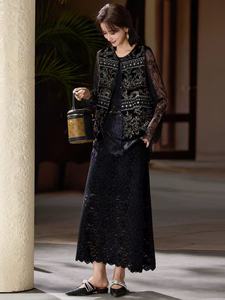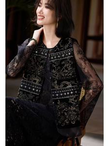 2025新款早秋款高级感真丝丝绒手工绣珠子国风马甲高端百搭上衣