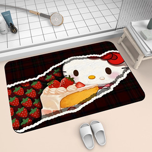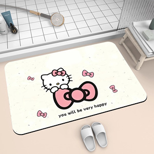 浴室卫生间门口卡通猫猫硅藻泥吸水防滑脚垫耐脏耐磨易打理地垫