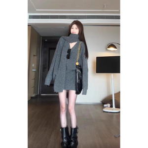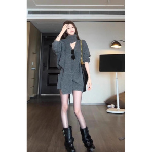 灰色高级感针织半身裙女ins2025秋冬季新款小个子a字高腰包臀短裙