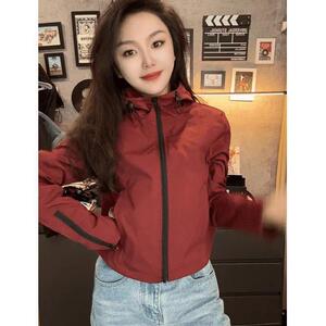2025秋季新品连帽冲锋衣外套女短款宽松时尚显瘦风衣夹克学生上衣