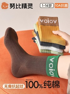 儿童袜子春秋100%纯棉a类无骨中筒男童女童中大童防臭全棉运动袜