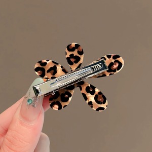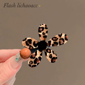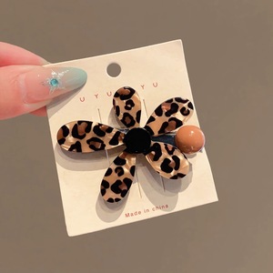 众点-豹纹花朵咖色半珠发夹
