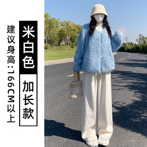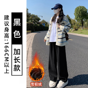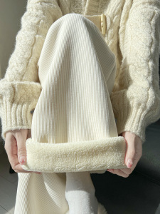 羊羔绒阔腿裤女2025新款高腰保暖棉裤秋冬季加绒加厚灯芯绒直筒裤