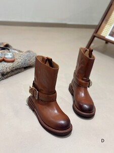 欧洲站女鞋25冬时尚软水洗牛皮圆头舒适休闲套筒平底切尔西皮短靴