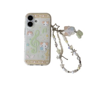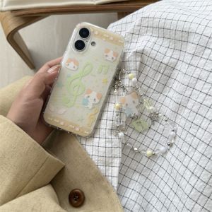 黄色星星波点音符棉花糖猫 壳+挂件链条