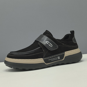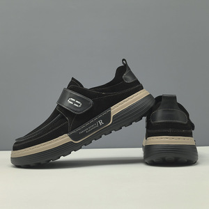 男生头层牛皮男款百搭潮鞋欧洲站真皮一脚蹬懒人鞋魔术贴休闲鞋男