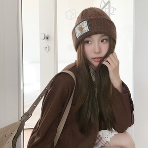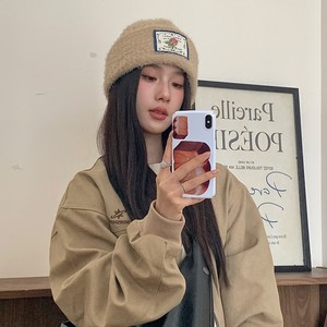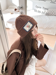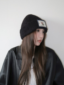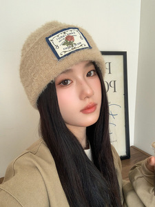 早秋新复古玫瑰花贴布毛绒针织帽女文艺休闲百搭休闲保暖包头冷帽