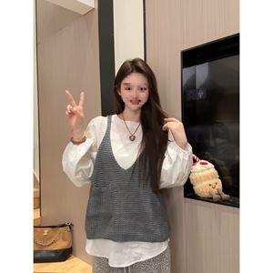韩系叠穿毛衣吊带女短款宽松外穿针织背心百搭休闲小马甲其他
