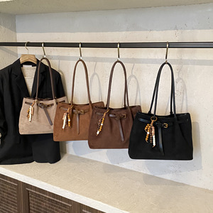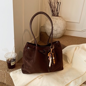 高级感复古麂皮绒包新款通勤单肩腋下包时尚女士大容量手提托特包
