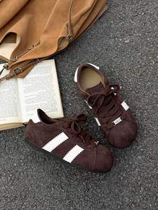 真皮内增高芭蕾德训鞋女2025秋新款丑萌南瓜头两杠登山运动休闲鞋