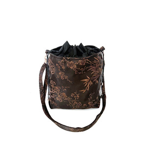 非遗香云纱单肩斜挎包新中式水桶包桑蚕丝国风手提软包抽绳女式包