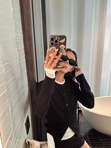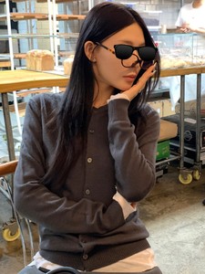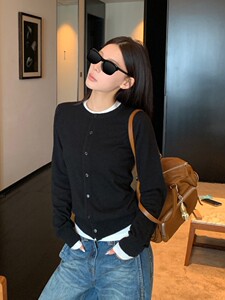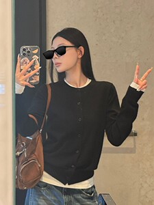 SUNONEONE 黑色系扣圆领针织开衫女秋季百搭长袖休闲气质外套
