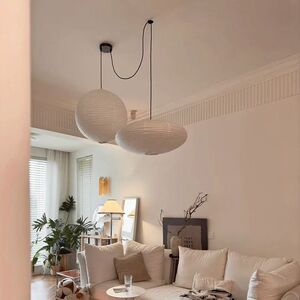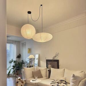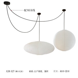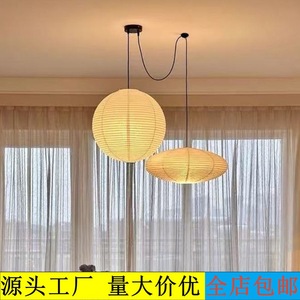 日式侘寂风可移位扁球纸吊灯客厅餐厅卧室书房民宿艺术灯宣纸灯罩