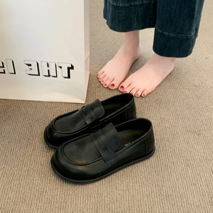 真皮法式平底英伦风小皮鞋女鞋2025新款秋季一脚蹬黑色复古乐福鞋